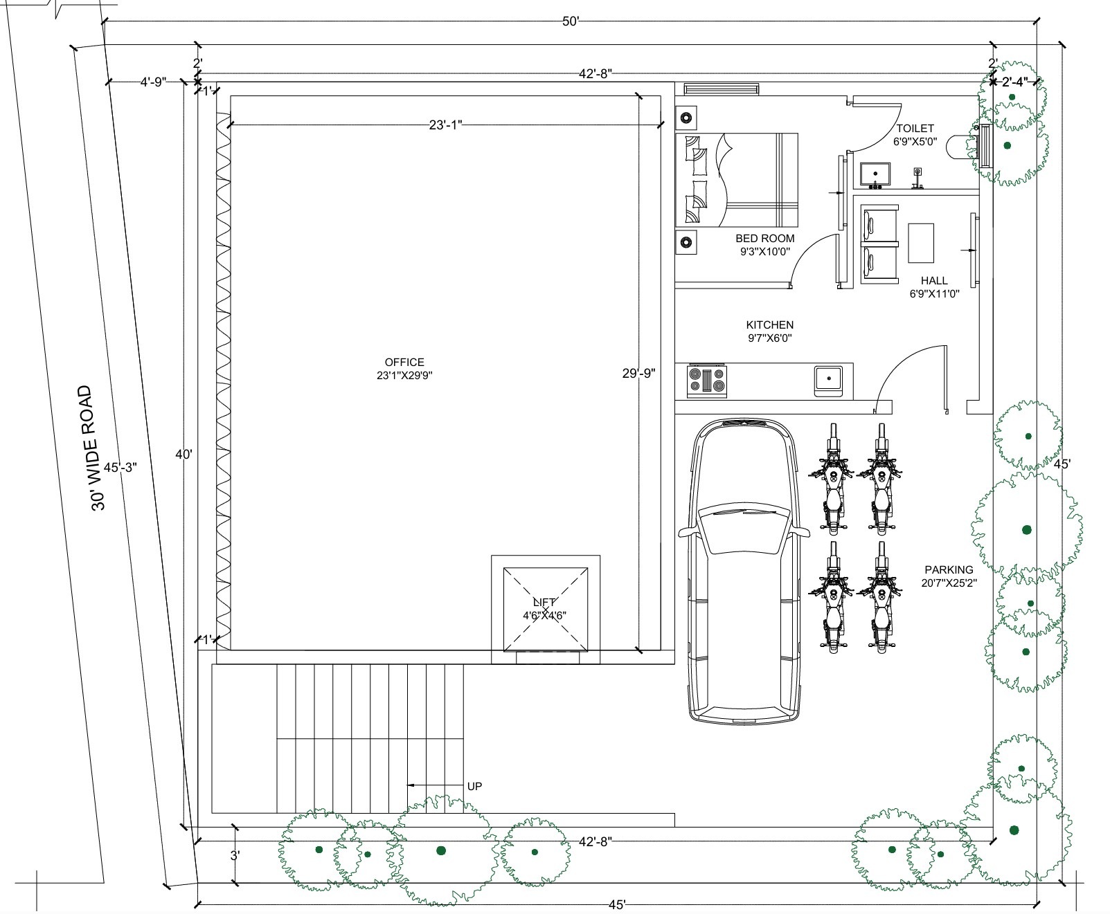 ◦ The large glass curtain wall at the center provides a sense of transparency, allowing natural light to permeate the interiors while visually connecting the inside and outside.